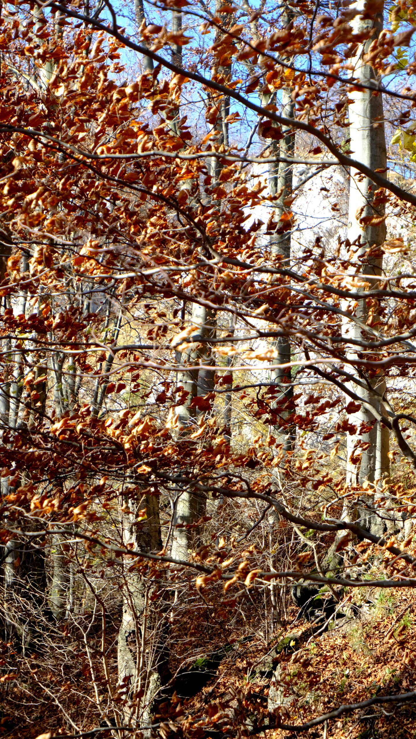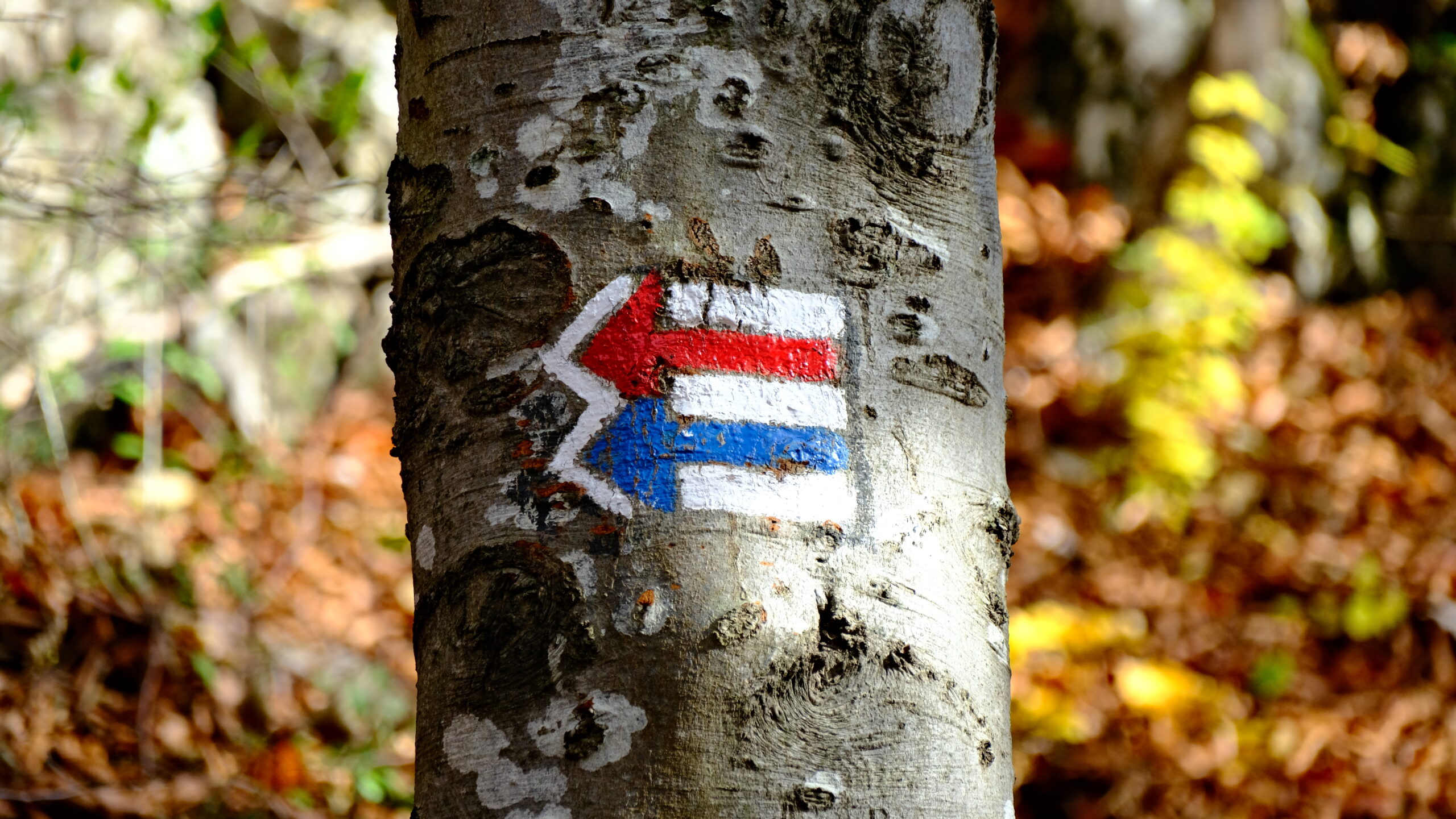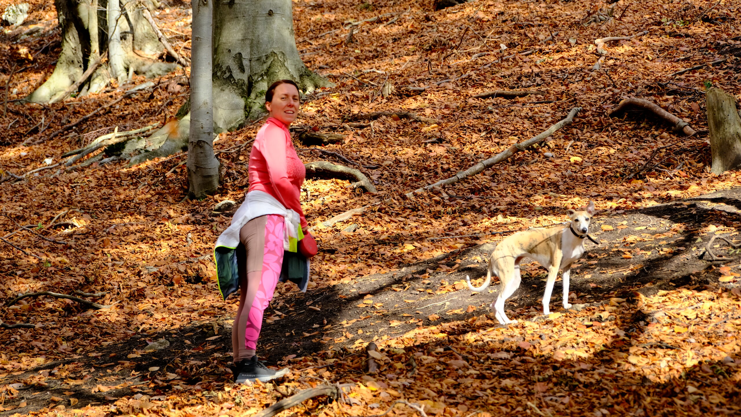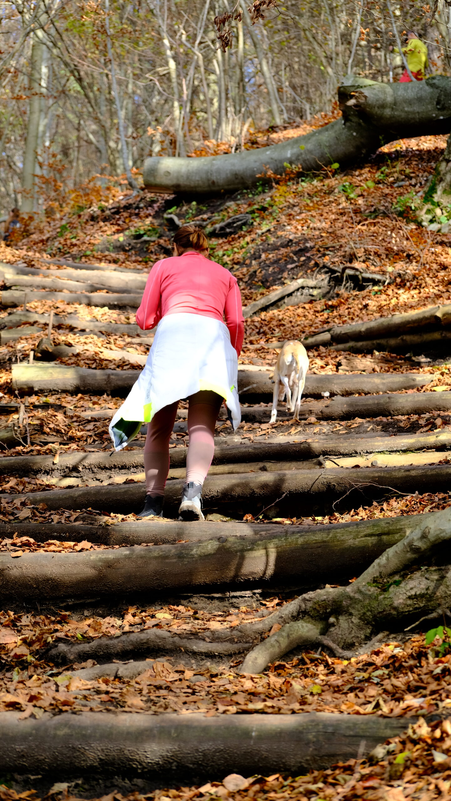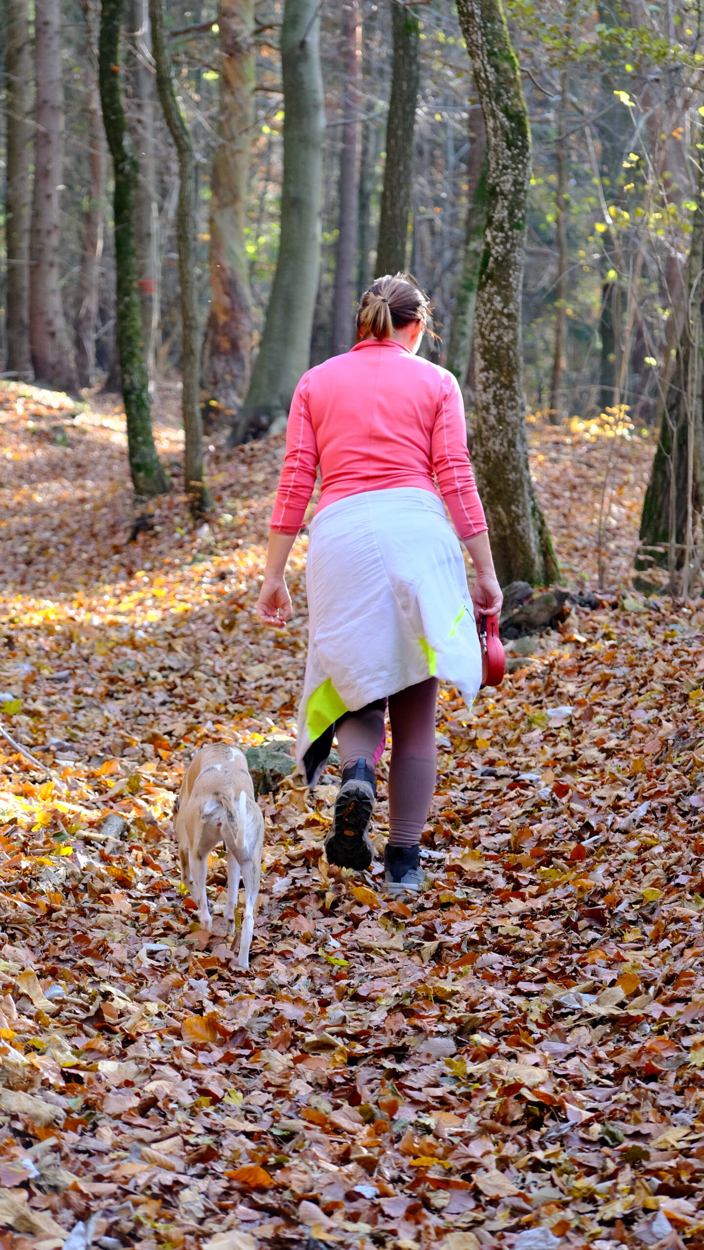 Naša túra začala v obci Horná Poruba, odkiaľ sme sa vydali po modrej turistickej značke. Stúpanie bolo spočiatku mierne, viedlo cez les, kde sa pod nohami miešali suché listy so zvyškami machu. Brita sa od začiatku pustila do „vedenia výpravy“ – vpredu, s čumákom tesne nad zemou, každú chvíľu kontrolovala, či ideme správne.